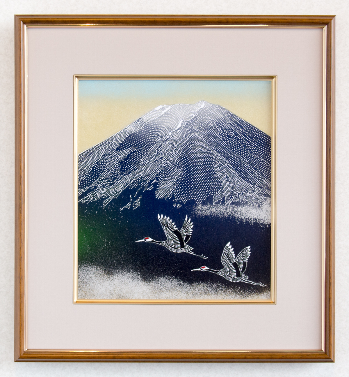 夫婦鶴に富士 伊勢型紙インテリア額 伊勢型紙専門店おおすぎ 株式会社大杉型紙工業